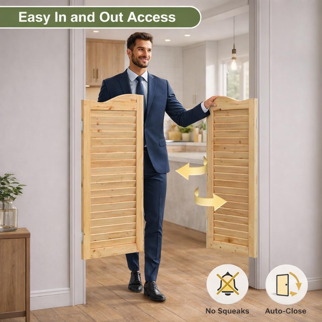 These swinging doors are ideal for a variety of residential and commercial settings, adding a vintage cafe aesthetic to kitchens, pantries, bars, or closets. They serve as an elegant partition that enhances privacy without completely closing off spaces, making them perfect for high-traffic areas where airflow and visual appeal are important. Homeowners, restaurateurs, and business owners will appreciate the versatility, as the doors complement modern, rustic, or traditional decor styles. Use them to separate rooms while maintaining an open feel, or to create a distinctive entryway that impresses guests and customers alike.