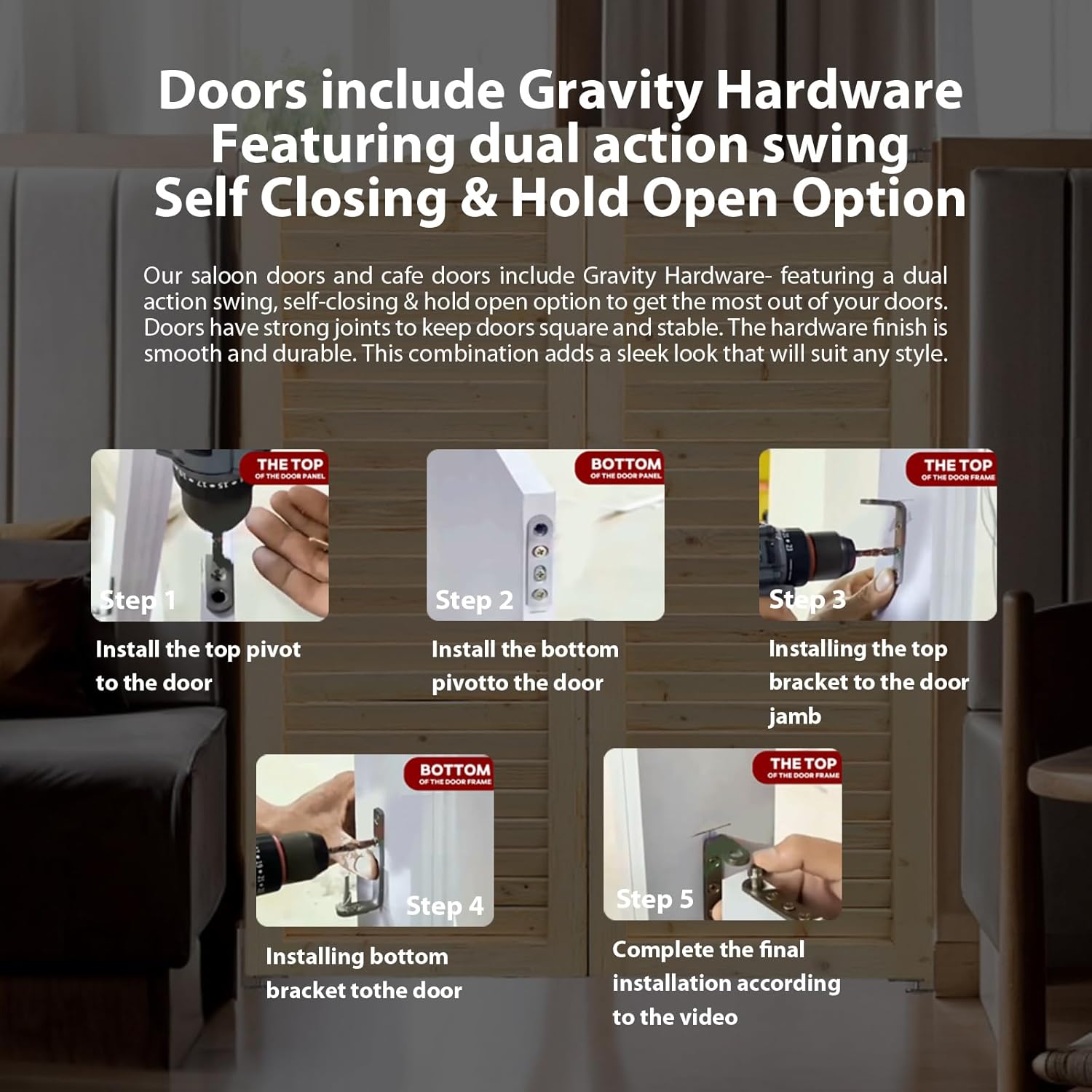 Choose S&Z TOPHAND for superior craftsmanship and reliability. Our doors are made from solid pine wood, ensuring strength and resistance to warping, with strong joints that keep the door square and balanced over time. We focus on dual-swing action for smooth operation, and the easy installation process saves you time and effort. As a trusted brand in swinging doors, we prioritize quality materials and user-friendly design, backed by positive customer reviews and a high rank in home improvement categories. This commitment to excellence means you get a product that not only looks great but also performs reliably in daily use.
